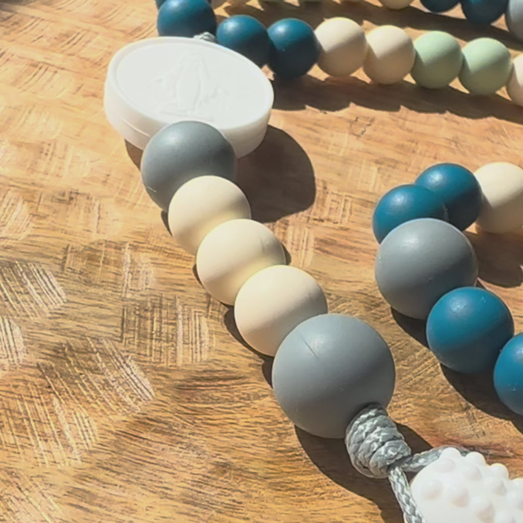 This beautiful silicone rosary is sure to bring joy to your home. This earthy-toned rosary teething toy is not only soothing for your little one but it will also help to build wonder and love for the rosary. Watching your child hold this Silicone Rosary is like watching them hold the hand of Mary.