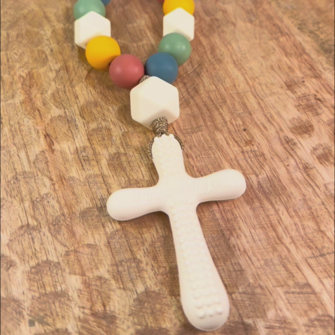 This silicone decade is soothing for your little one, and is also a wonderful way to instill devotion to the Rosary. Watching your child hold this Decade is like watching them hold the hand of Mary.