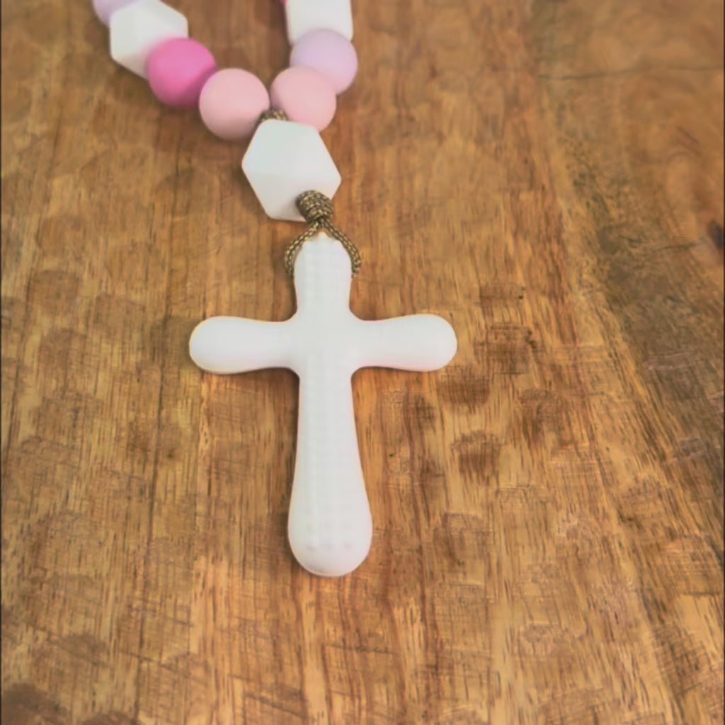 This silicone decade is the perfect teething toy! Not only is it fun and soothing for your little one, but it is also a wonderful way to instill devotion to the Rosary. Watching your child hold this Decade Teether is like watching them hold the hand of Mary.