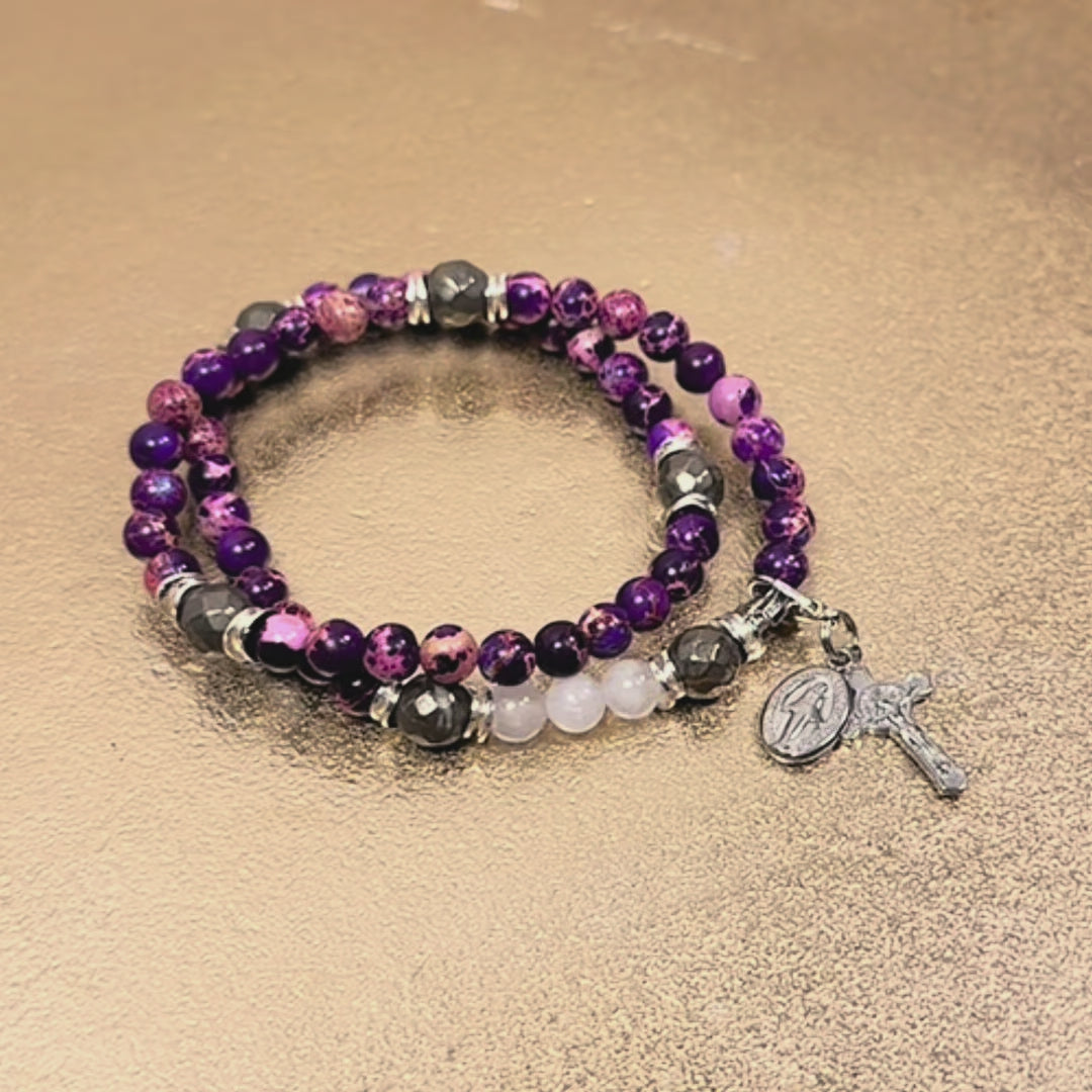 Purple — the color of penance, preparation, and royalty — calls us to repentance while reminding us that Christ reigns as King. The Penance Rosary Bracelet invites you to enter into the beauty of Advent and Lent with a spirit of reflection and anticipation, preparing your heart to receive the glory of Christmas and Easter.