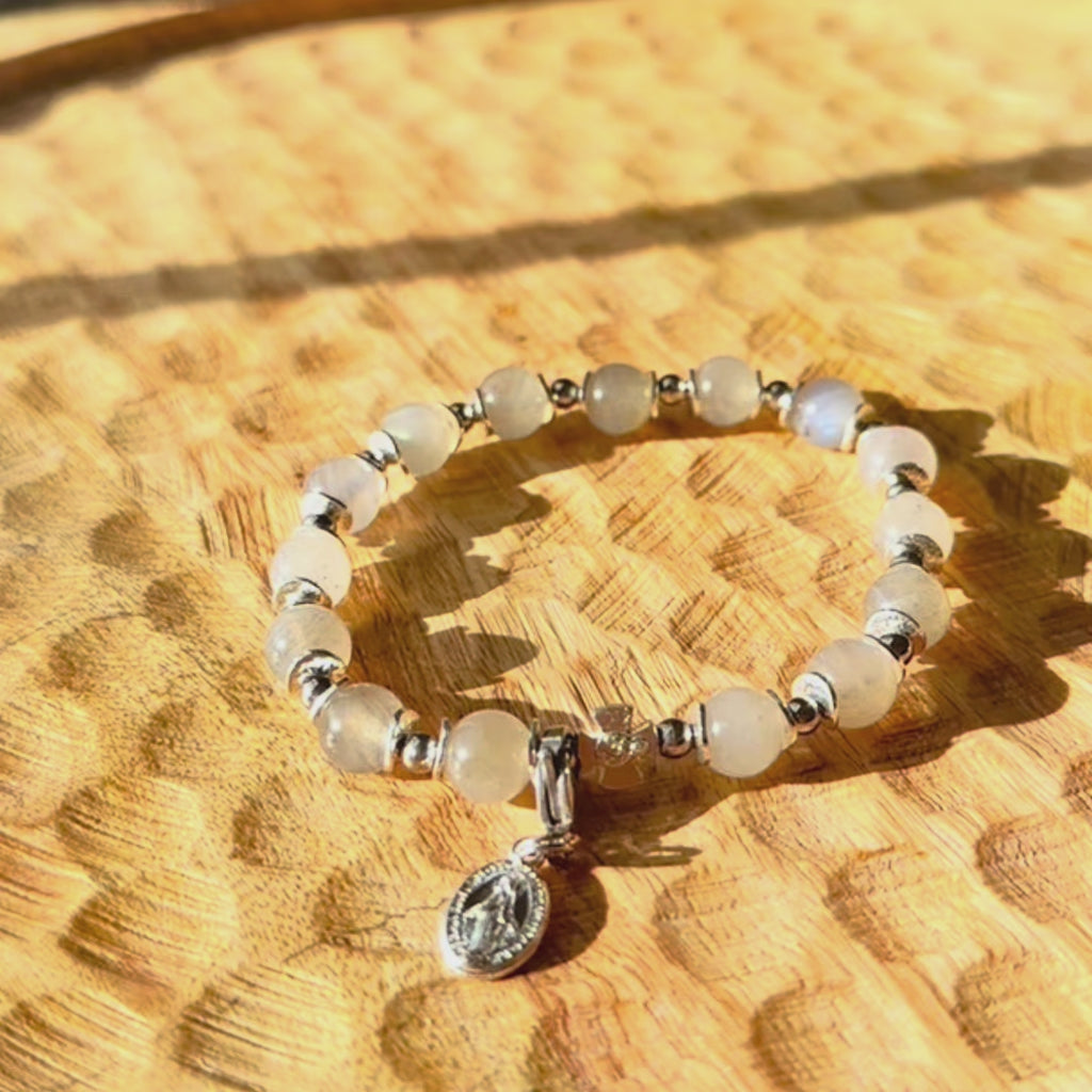 The soft, silvery hues of gray moonstone invite a quiet posture of waiting and wonder , a perfect companion for Advent prayer as we prepare our hearts for the coming of Christ.